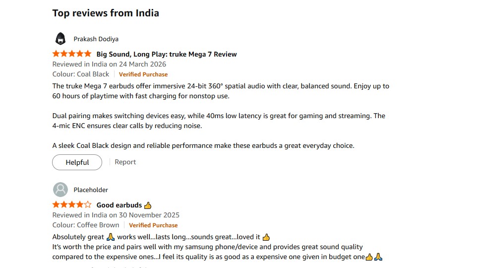 कई users ने अपने review में बताया है कि यह earbuds daily use के लिए एकदम perfect है, चाहे आप music सुन रहे हों, calling कर रहे हों या फिर videos देख रहे हों।